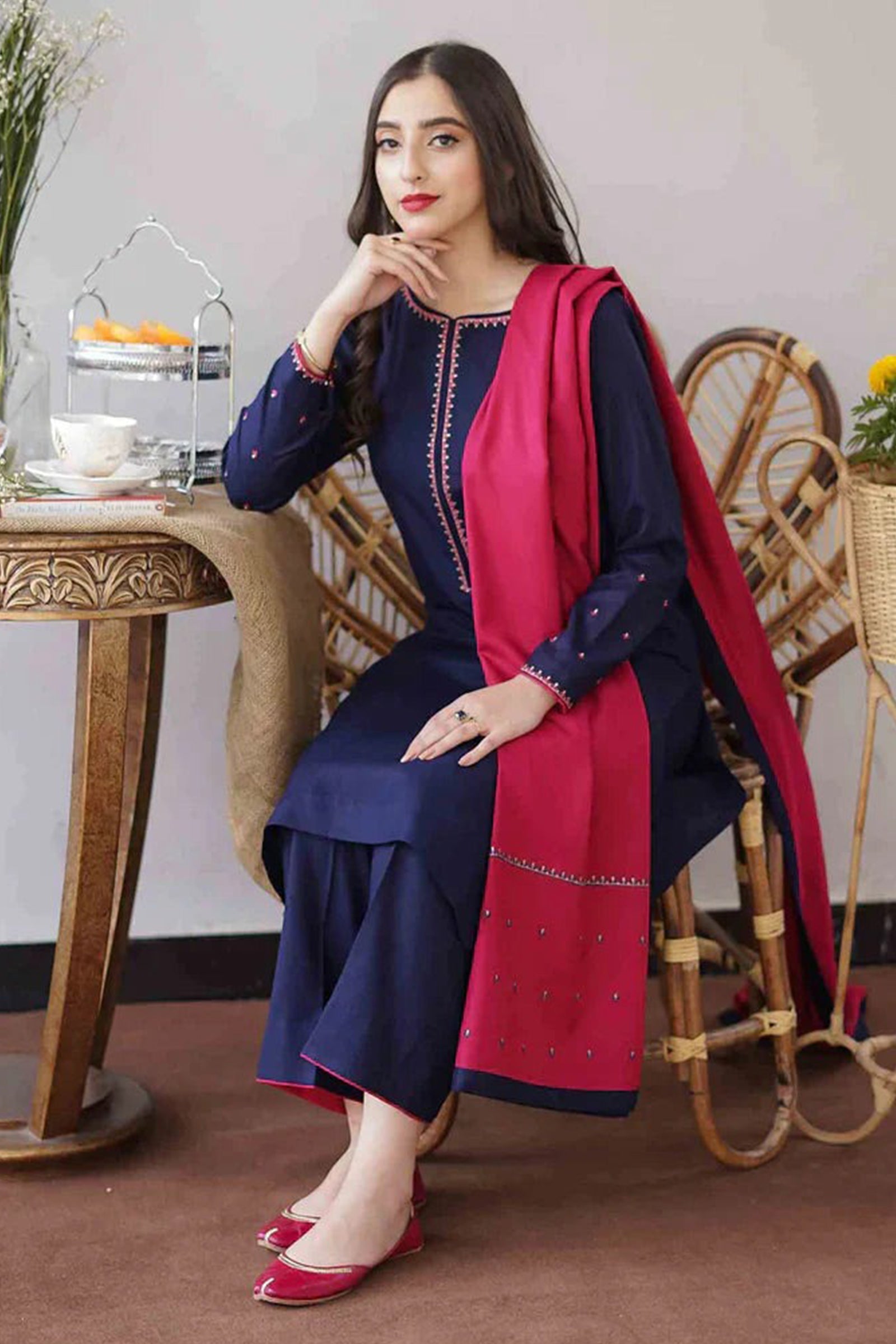 QN404-Asling Winter 3PC Unstitched Dhanak suit with Embroidered Shawll