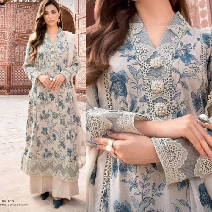QN729-Bareeze -Embroidered 3pc lawn dress with embroidered chiffon dupatta unstitch